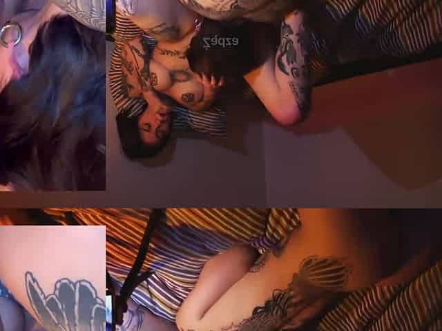 Vibrator Orgasm for Tattooed Webcam Girl with Small Tits