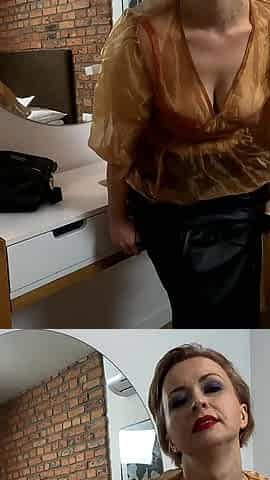 Amateur wife shows off her body dancing naked around the building while trying on clothes