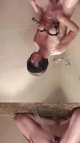 Taking My Friends Hot Mom To Shower - Cumshot after wet bathroom sex with big ass blonde MILF