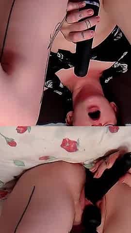 Vibrator Orgasm for Tattooed Webcam Girl with Small Tits
