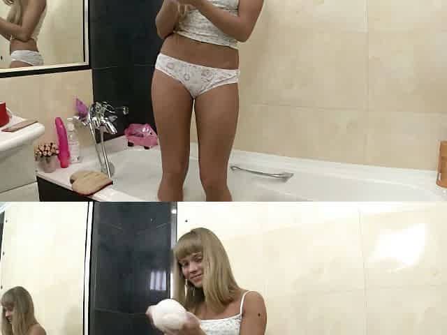 2 lesbo angels Amber Wild, Azalea Lee masturbate with toys.