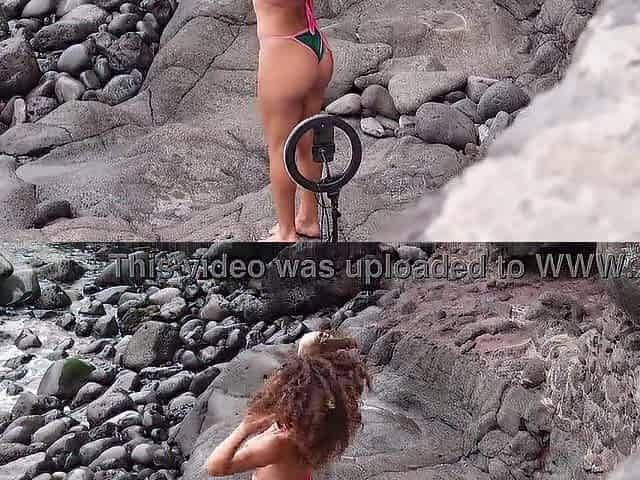 Influencer fucks on the cliffs with two hands in her ass
