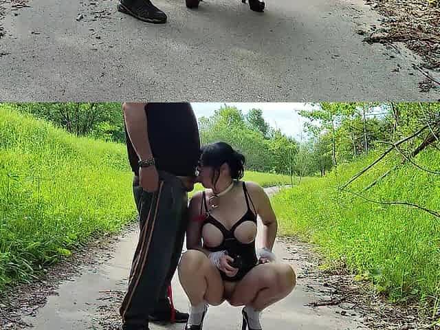 I masturbate and stick a dildo in my pussy while standing on a wooden stump