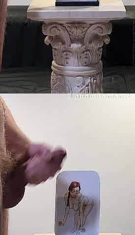 Claude Bombard defaces artwork of Penny Pax, cums on her glasses, face and melons - art ejaculation