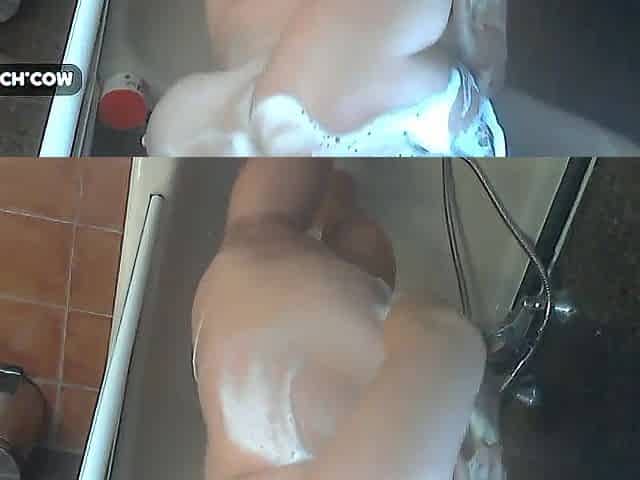 Chunky butt soapy teen comes hard in a bathtub