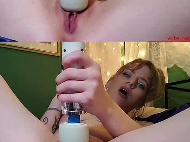 Redhead babe's first solo webcam orgasm with her toy