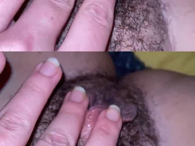 Playing With My Large Bushy Clitoris Leaking Moist Twat