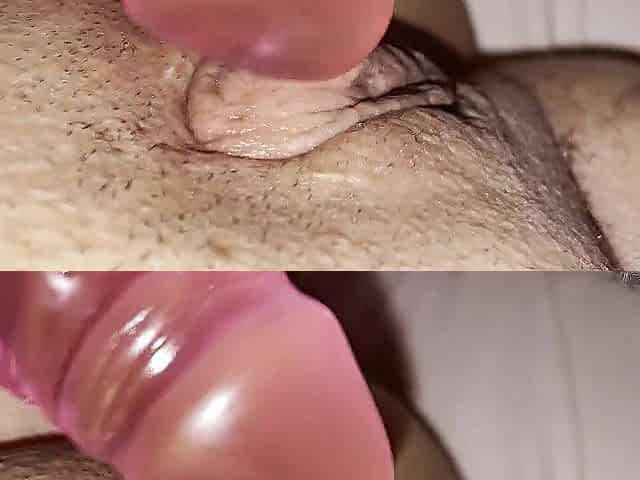 Masturbating my soaked little tdick and moist cunt closeup making myself groan and cum