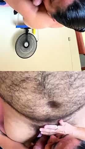 Threesome blowjob with cumshot