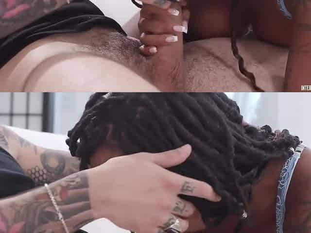 Hard interracial dick-riding with gorgeous Blake Blossom and Sky Wonderland