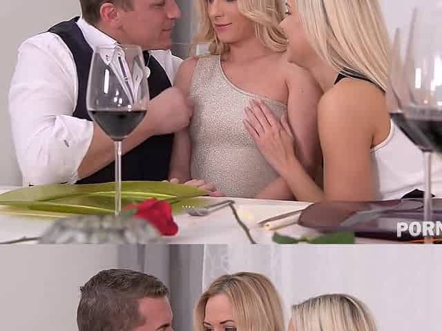 Dinner Orgy: Threesome Makes Him Cum On Two Hot Blondes