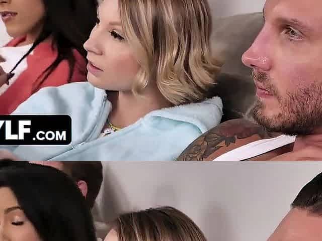 Filthy Slim Lusty Milf Tempts Her Fit Petite Blonde Stepdaughter To Enjoy Hardcore 4-some With Dp