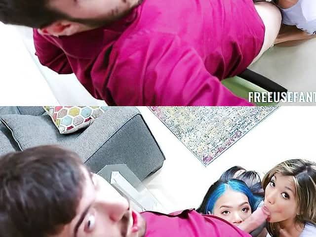 Jada Kai and Lulu Chu suck and fucka big white cock