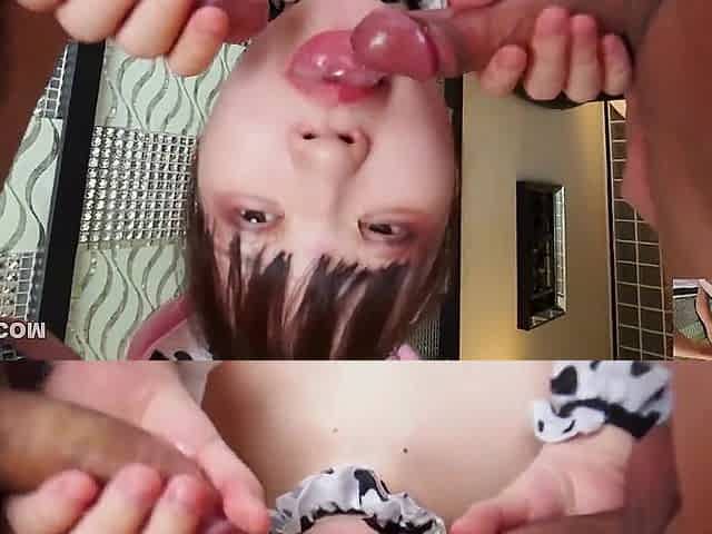Naughty Japanese MILF Rika Aiba gives double blowjob session