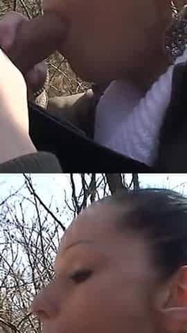 Brunette Slut Gives Blowjob To Big Cock Outdoors