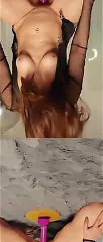 I fuck myself with a huge dildo and take a dick in my mouth