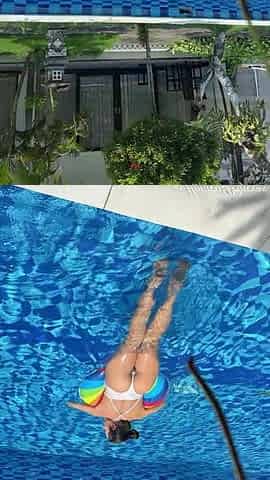 Outdoor Yoga Tree Pose & Tease in See-through Bodysuit in the Pool