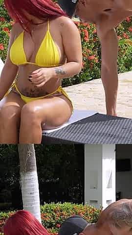 Pool Attendant Gives His Redheaded Boss a Blowjob Outdoors - Brandon Cruz & Alejandra Palacios