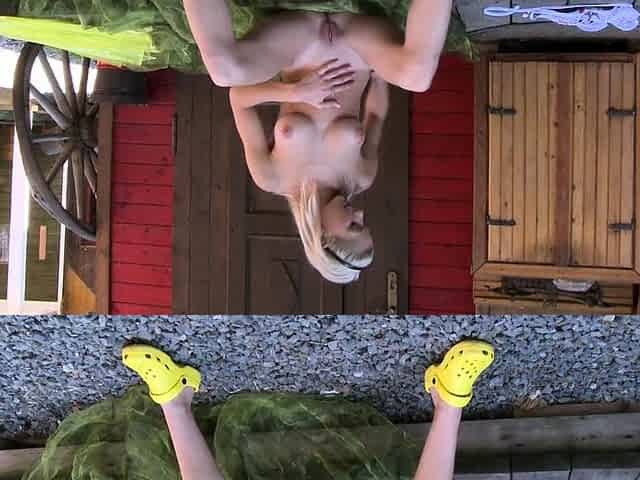 Sporty hot blonde Polly Yangs seduces the neighbor for a backyard session at her mansion
