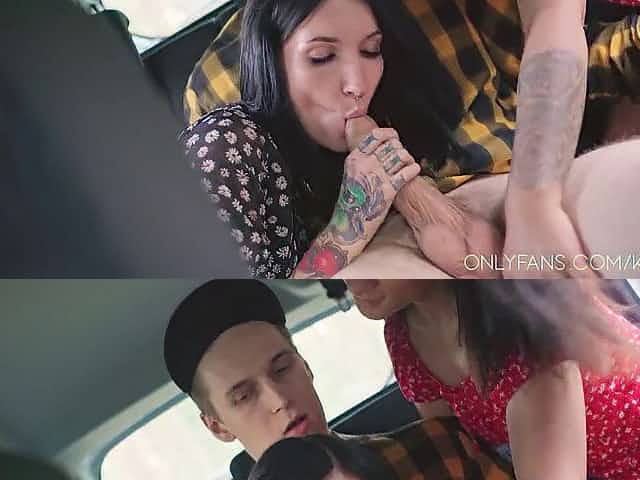 Kira Perez And Ameena Greene - The Fucking Public Bus Threesome