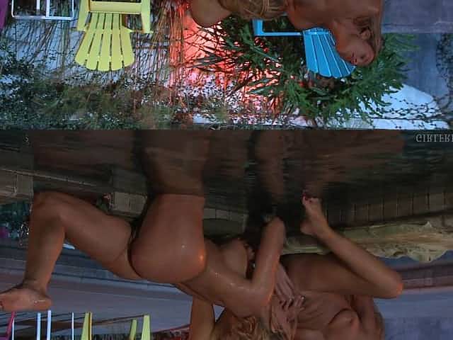 Swimming in Lesbo Blonde Neighbors Pool Like Mermaid