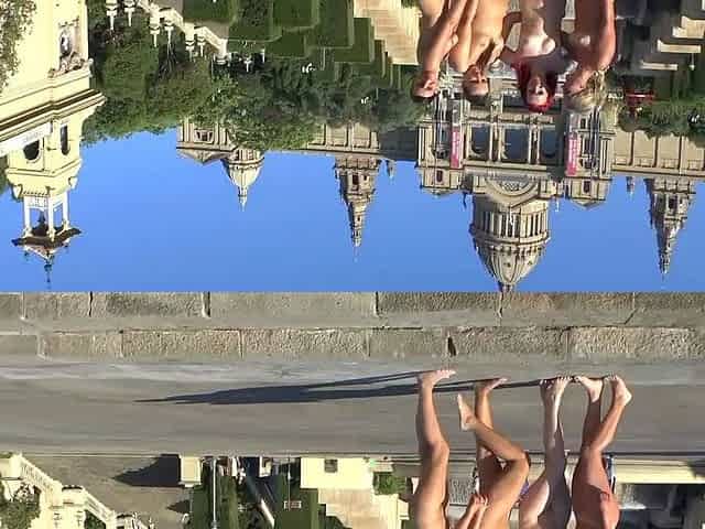 Sexy naked teens play together at a public beach