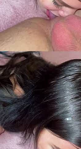 Hot brunette chick with nice ass loves worhiping my cock with her mouth and then takes it deep in her pussy in doggystyle positi