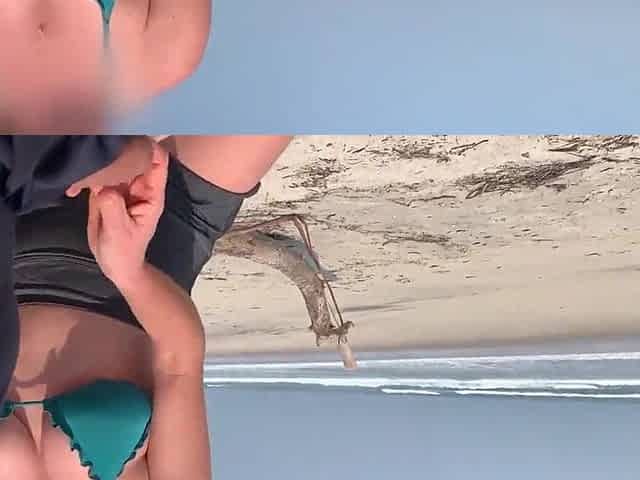 Stripping Naked Out of Mini Dress on Beach