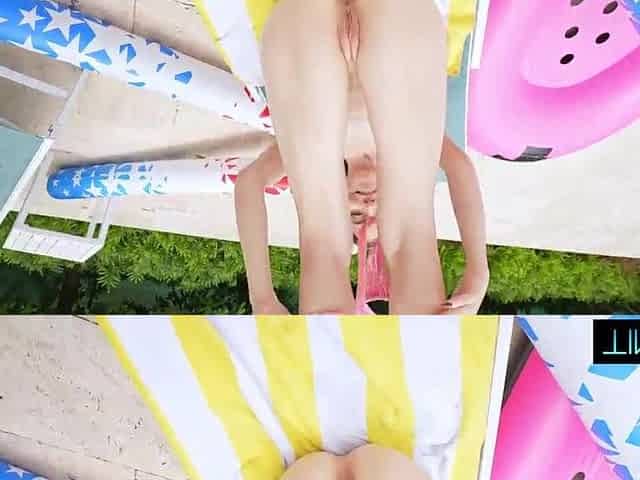 Hot Redhead With Blonde Partner Licking Her Pussy By The Pool