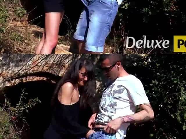 Brunette hair whore Samia Christal enjoys anal sex outdoor