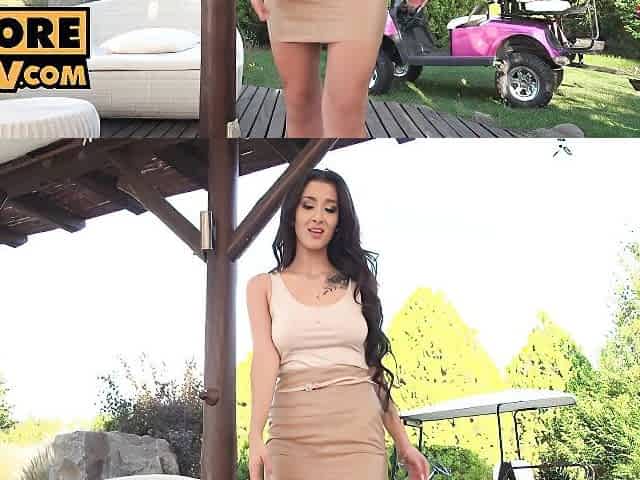 Backseat interracial fuck with a slutty brunette angel Eevee Luna