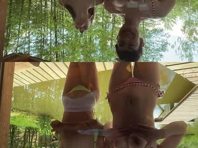 Poolside ploughing for two babes with real big boobies