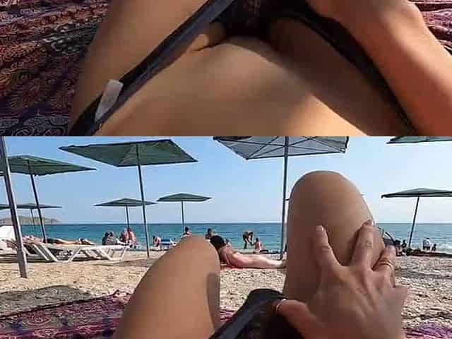 Marjana’s beach tease: bikini aside, pussy peek 😏🌊