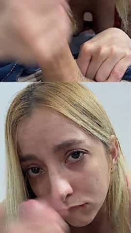 Street Pickup Golden-haired Got Facial Leaking By Random Wall