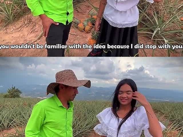 A Colombian peasant is picked up by a dude who undresses her bare in a pineapple plantation to screw her