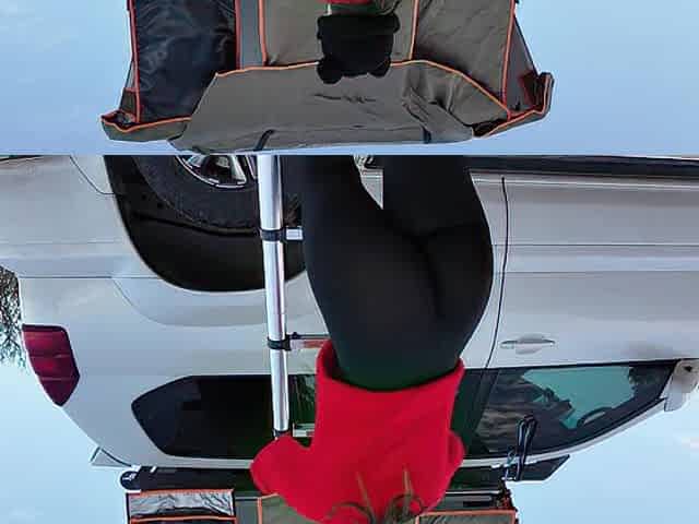 Mountain hotty shows off rooftop tent set up and light up anal intercourse