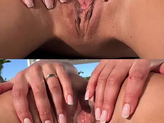 Small titted Briana toying herself poolside