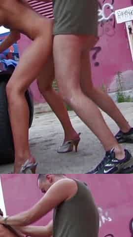 Brunette babe fucked outside