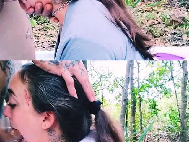 Brunette Slut Gives Blowjob To Big Cock Outdoors