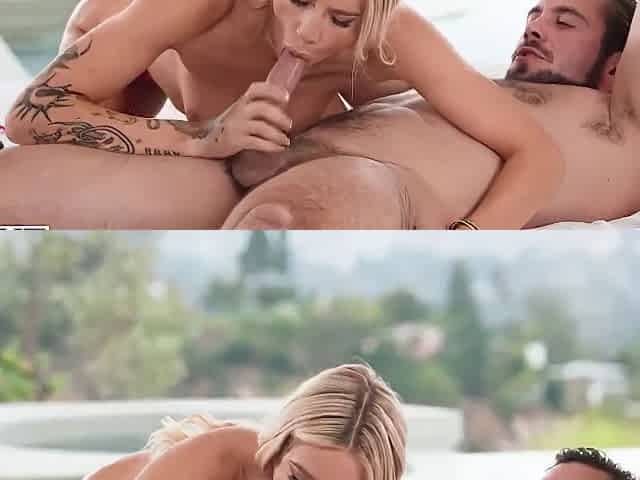 Blonde Poolside Bombshell Sucks Cock Wildly