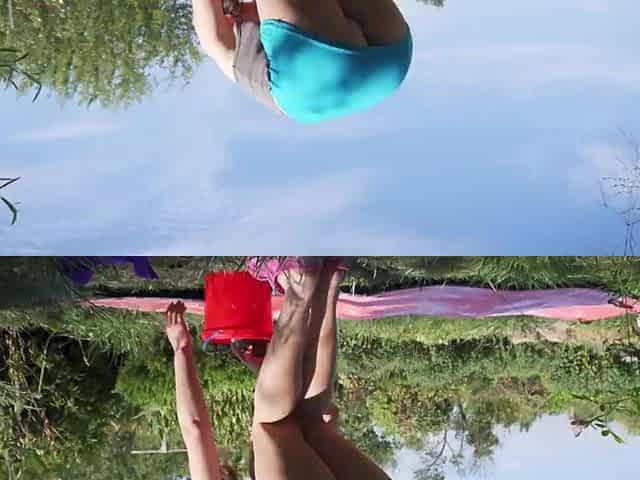 Hot Wife Cleaning Yoga Mat And Flashes Booty Below Petticoat Outdoors