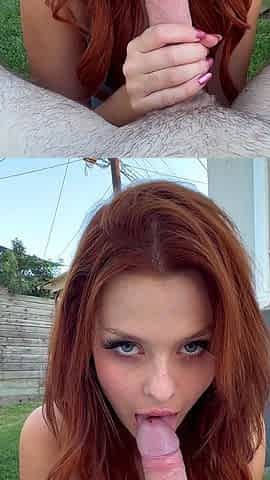 Brunette Slut Gives Blowjob To Big Cock Outdoors