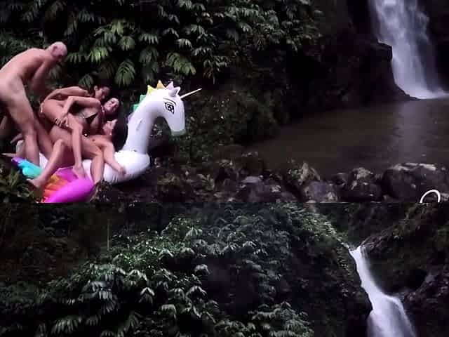 Explosive Outdoor Foursome with Deepthroat Blowjobs and