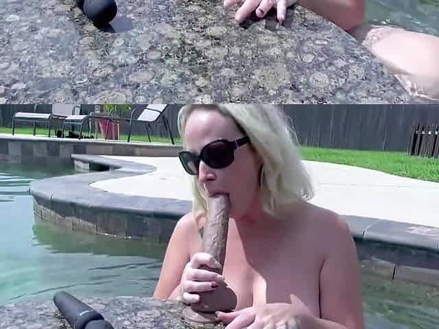 Two Big Tits Girlfriends Chill by the Pool and Then Deepthroat Two Big Black Cocks.