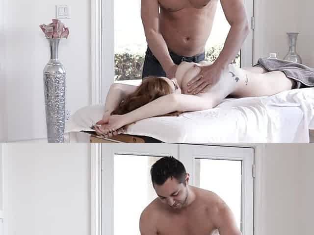 Pale redhead Scarlet Skies opens legs to ride a dick in cowgirl