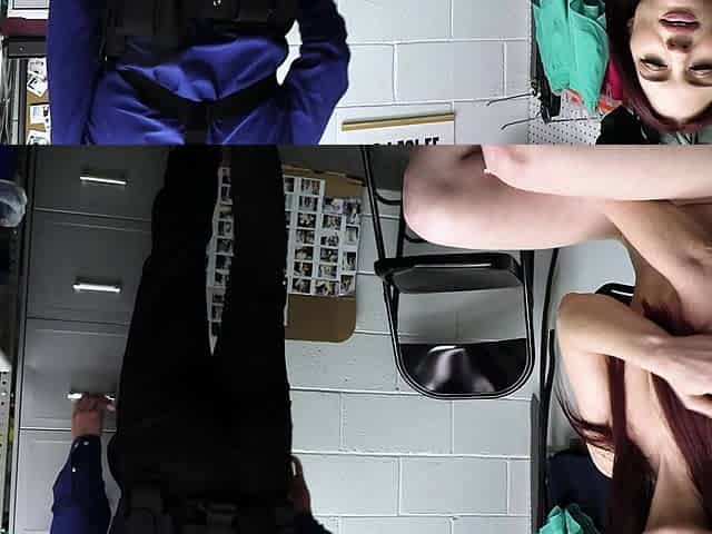 Pale redhead shoplifter Jessica Ryan gets fucked on the table