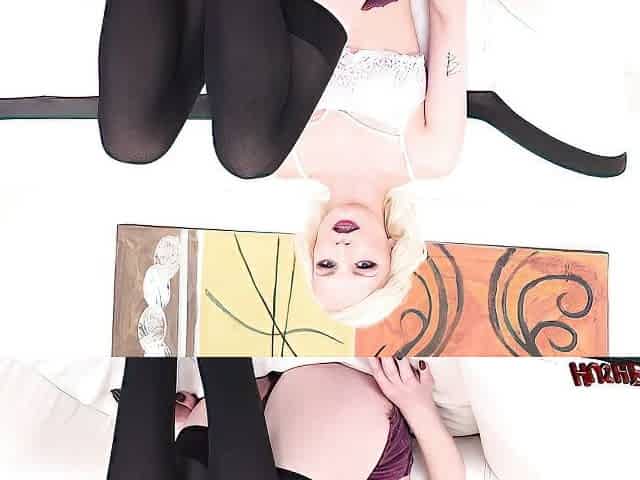 Busty blonde girl Skyla Novea in stockings rides a hard dick