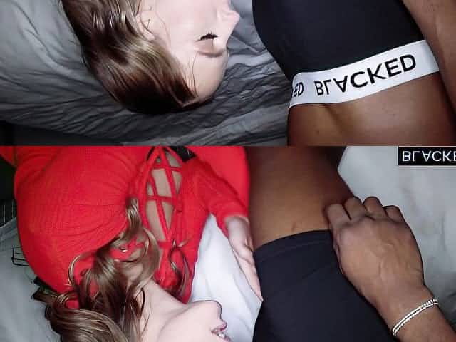 Interracial fucking on the sofa with pale redhead Madi Collins