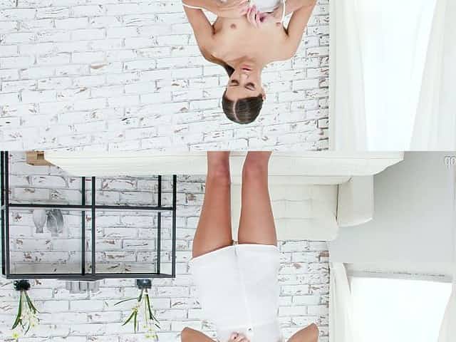Flexible pale and natural brunette slut works on long fat cocks (MMMF)