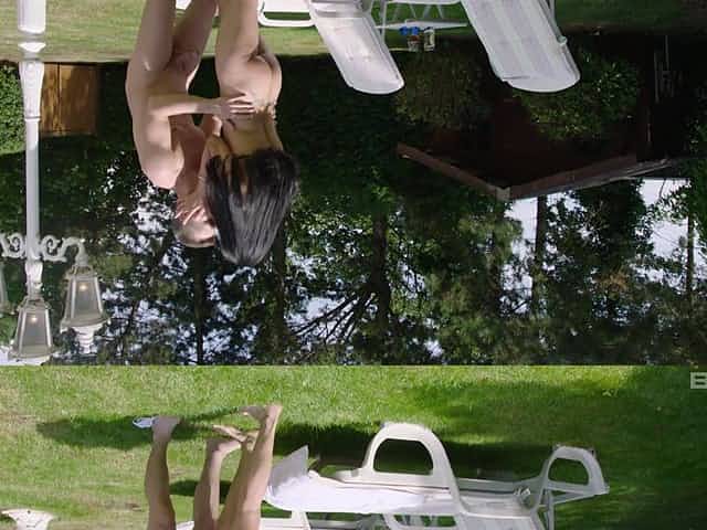 Pale mature brunette MILF Mariskax sucks and rides by the pool